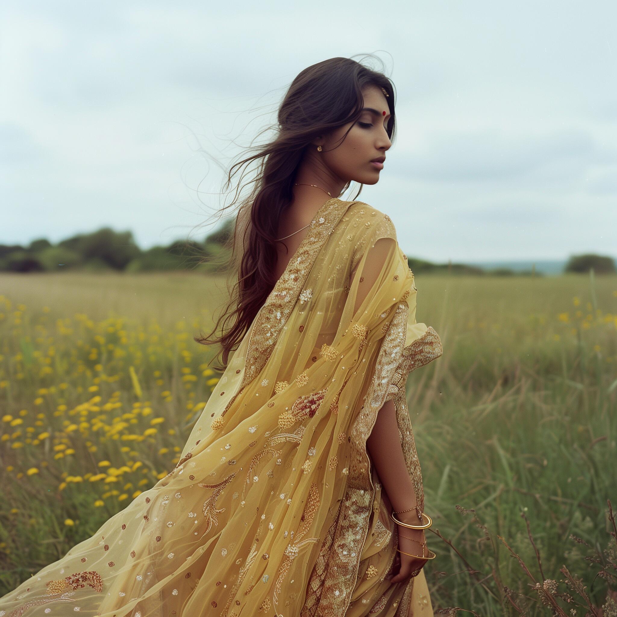 Whispers of tradition, colors unfurled, grace in every fold, a story of love.